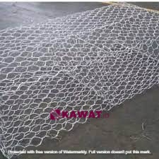 Jual kawat bronjong / kawat baja galvanis yang memiliki bentuk lubang segi enam dan kotak sebagai penguat tumpukan batu.